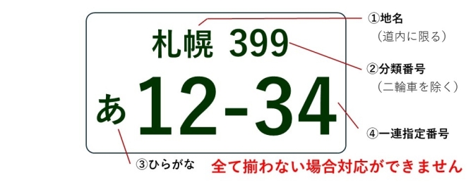 小型特殊自動車及び軽車両の場合は、情報として受付いたしかねますので、予めご了承ください。