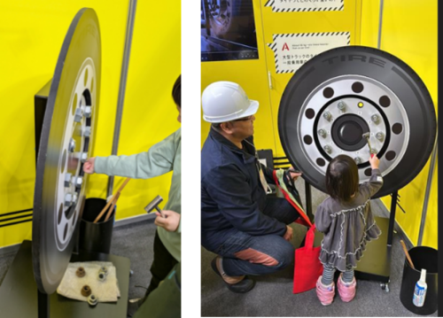 メインテーマである「脱輪防止啓発」では、大型車のホイール・ナットの緩みを工具で確かめる体験が常に行列となり、多くの方に啓発動画も視聴いただきました。