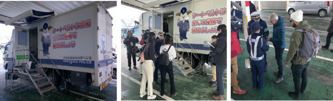 本取組は、ニッポンレンタカー新千歳空港営業所において、北海道警察所有の交通安全教育車「ほくと号」を活用し、運転シミュレータにより日本の交通ルールや冬道での運転を事前に体験してもらうもので、全国で初めての取り組みとなります。
