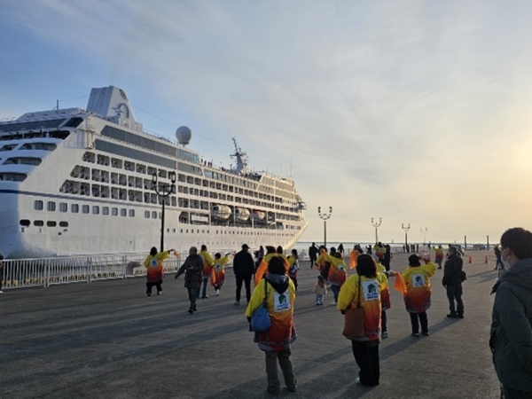 釧路港では、「釧路みなとオアシス協議会おもてなし部会」を中心に、クルーズ客船寄港時の歓迎・送迎など、心のこもったおもてなしイベントが実施されています。 釧路運輸支局においても、こうした取り組みに連携し、出港時のお見送りなどに参加しています。