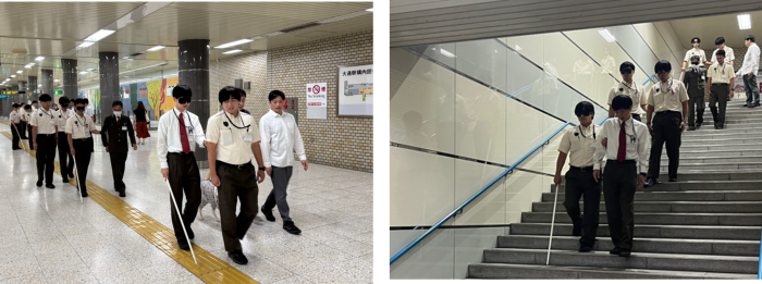8月8日、北海道運輸局では「合理的配慮」と「建設的対話」の前提となる介助、手引きの基礎について確認するため、地下鉄大通駅内において、札幌市交通局等の14名の職員を対象にバリアフリー教室を開催しました。
