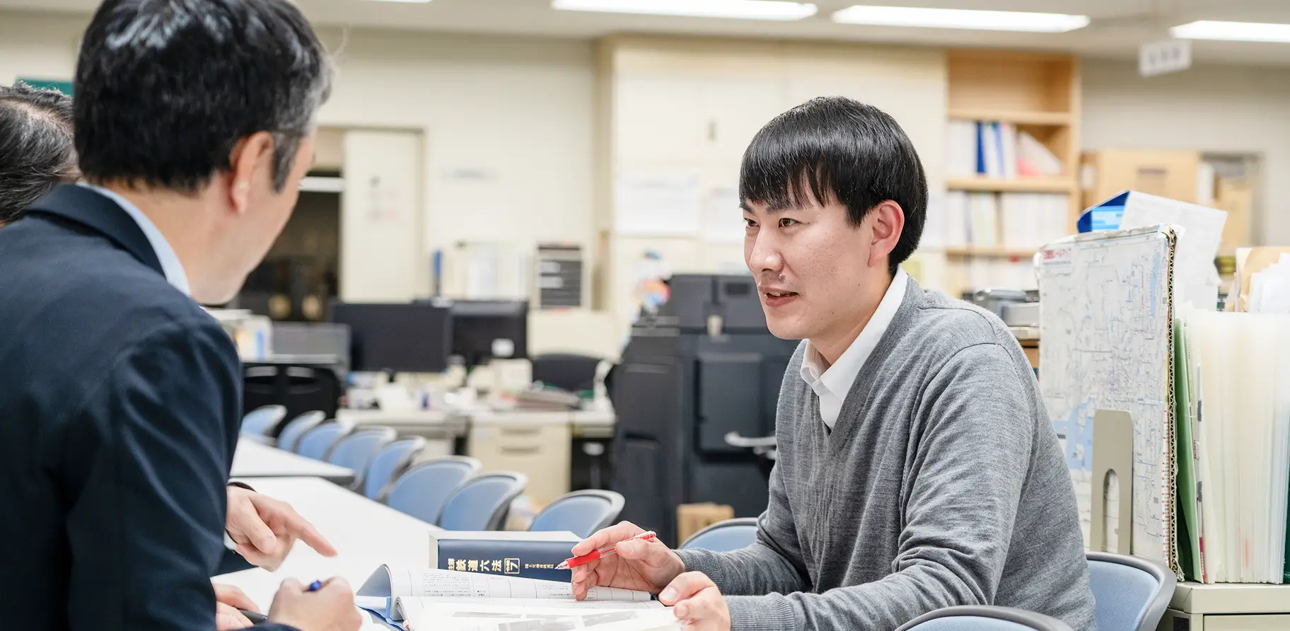 公務員といえば「お堅い」「デスクワークばかり」というイメージがありましたが、実際は大きく異なりました。もちろん法律や基準は絶対ですが、部署によっては現場に出る機会も多く、事業者の実情をしっかりと捉えた上で、柔軟な対応ができるように検討しながら業務を進めています。
