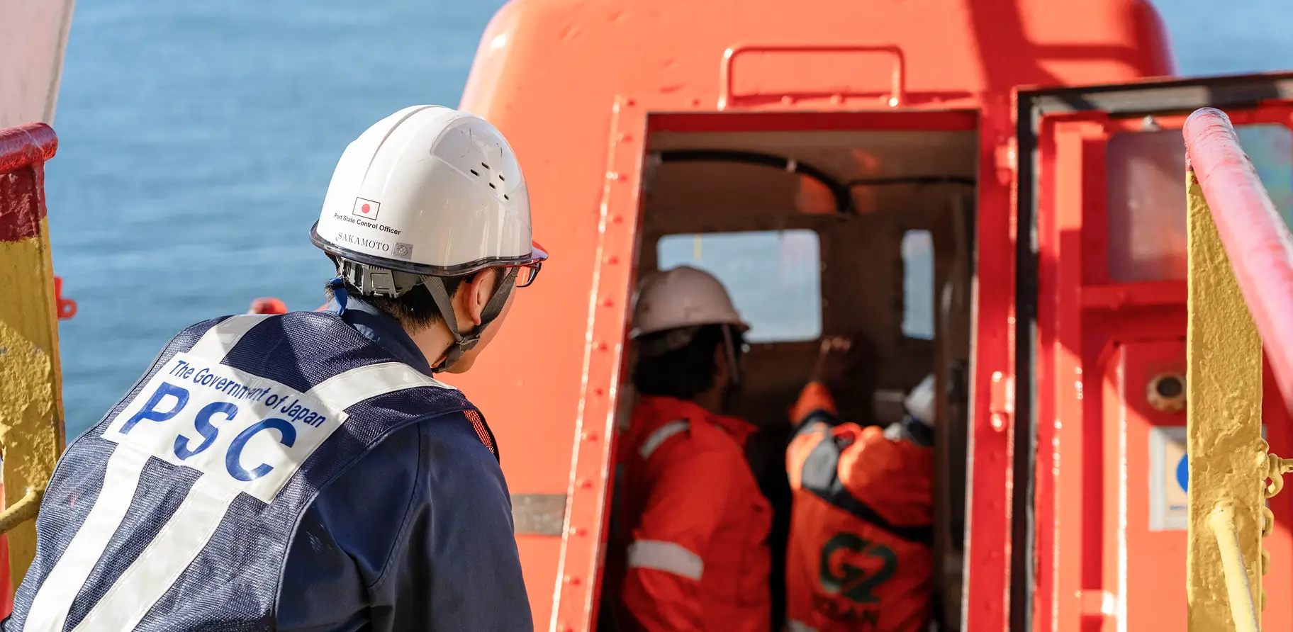 現在、外国船舶監督官(PSC:Port State Control「ポートステートコントロール」)として、日本に入港してくる外国船に立ち入り、安全基準などを満たしているかどうかの検査を行っています。