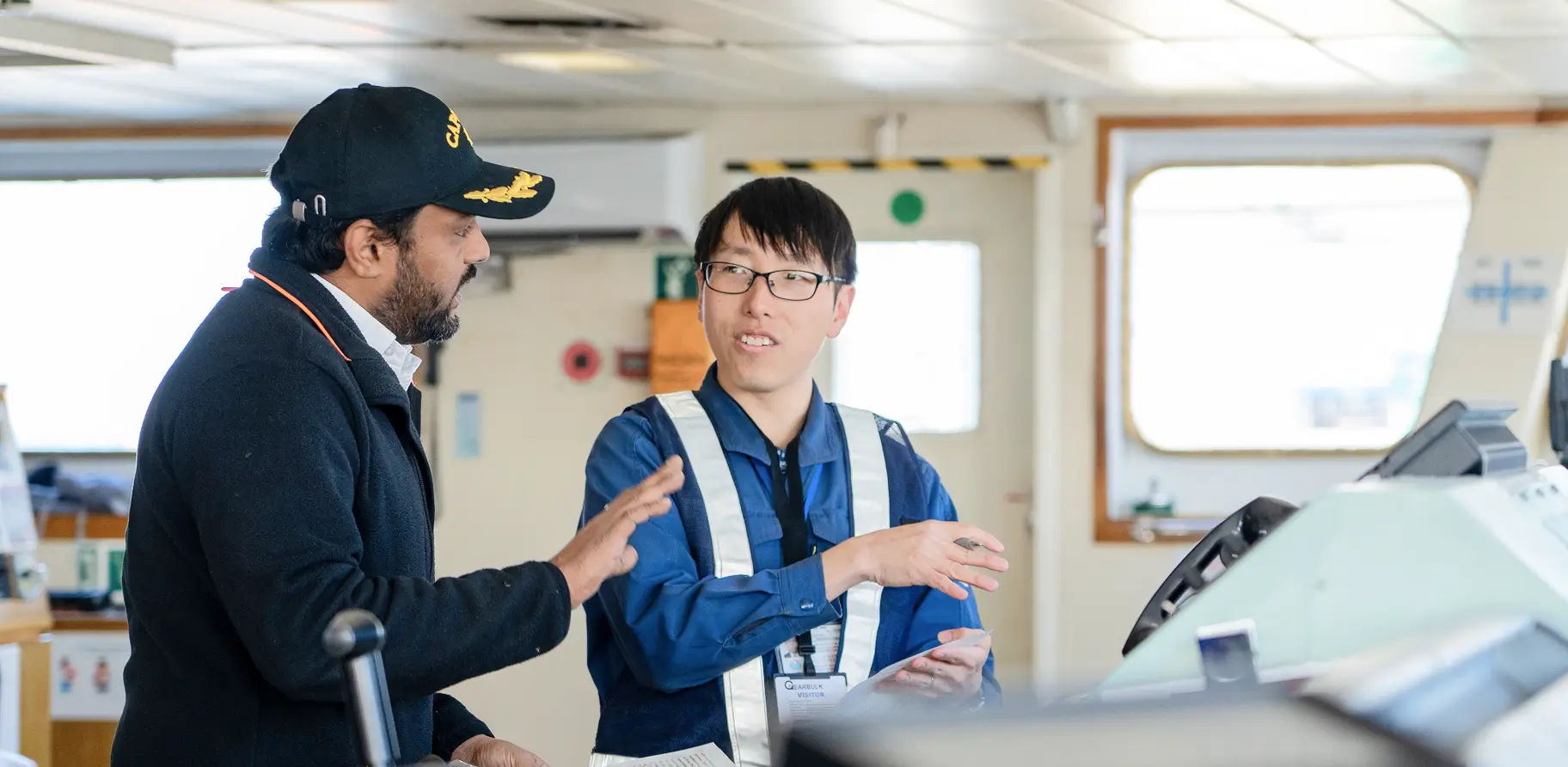 また、実際の検査現場では、様々な国籍の外国人船員と英語でやり取りをする必要があります。相手もネイティブではないことが多く、お互いの英語が上手く伝わらないことも珍しくありません。コミュニケーションの難しさに直面することもありますが、身振り手振りを交えたり、言い方を変えたりして理解し合えた時は嬉しく、今ではその苦労自体が仕事の面白みの一つだと感じています。