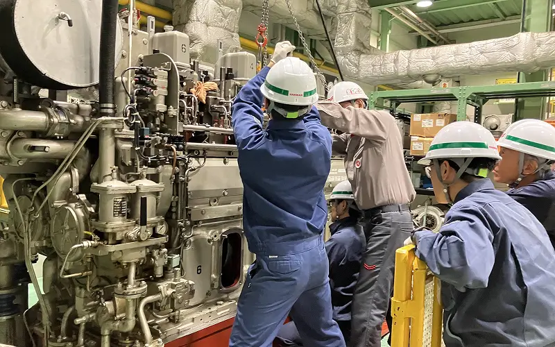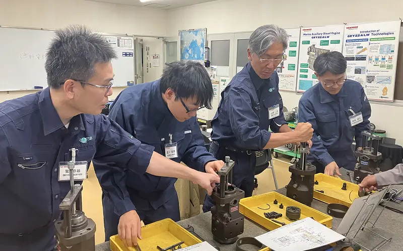 機関付属機器構造説明と分解組⽴実習などを通じて、船舶機関に関する検査技能を習得します。