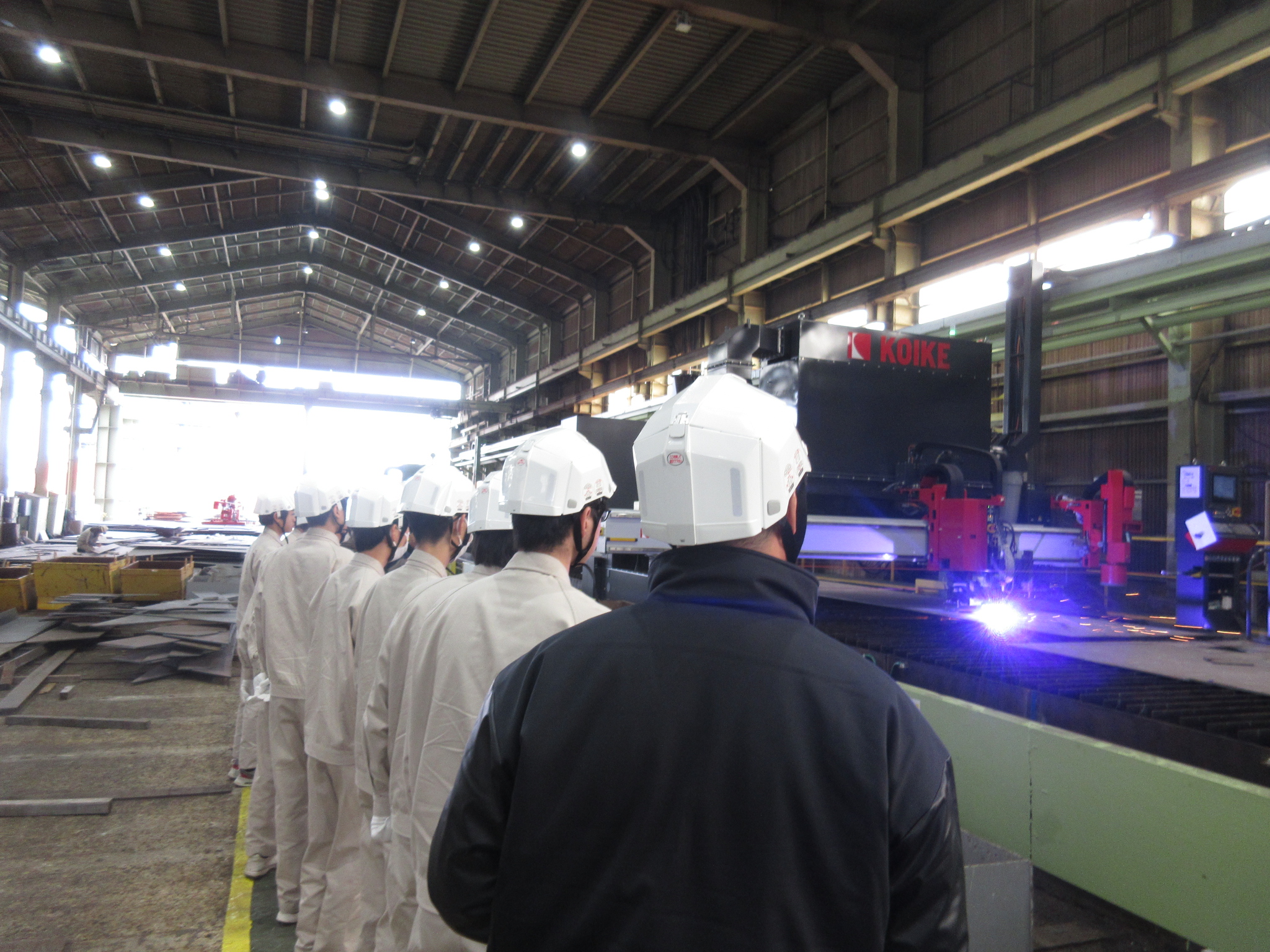 ・工場内で加工工程、ブロック組み立て工程、艤装工程を見学
