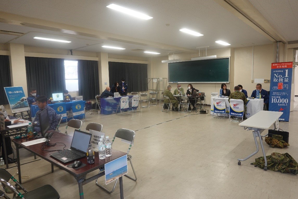 日 時 令和8年2月27日(金)10時00分〜15時00分 場 所 陸上自衛隊松山駐屯地 実施内容 ・挨拶(四国運輸局愛媛運輸支局長 他) ・全般説明 ・自衛官募集説明、予備自衛官制度説明 ・個別面談(参加企業と自衛官) ・職業体験 ・運転体験(大型バス、タクシー、大型トラック) 参加者 国土交通省四国運輸局 農林水産省中国四国農政局 愛媛県 企 業 29社(宿泊業、鉄道、造船業、舶用工業、バス、タクシー、トラック、自動車整備業、 介護、就農) 自衛官 約50名