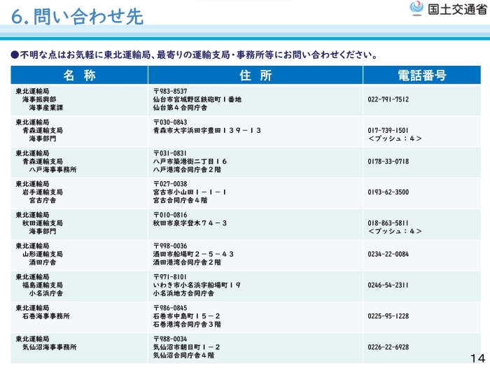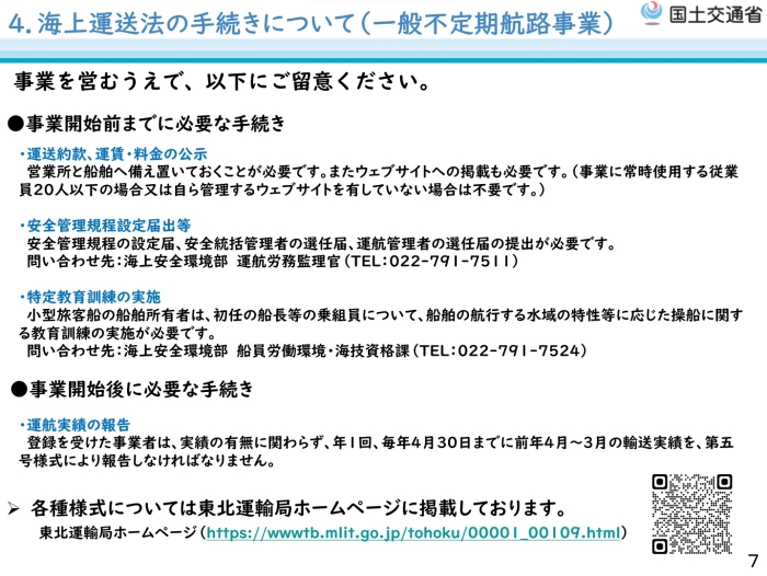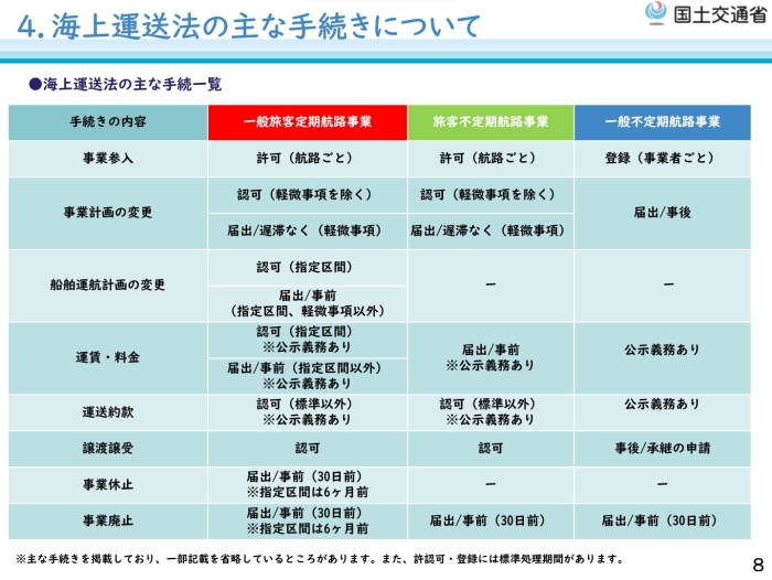 東北運輸局 > 海運・船舶・船員 > 海上運送法の手続き等について